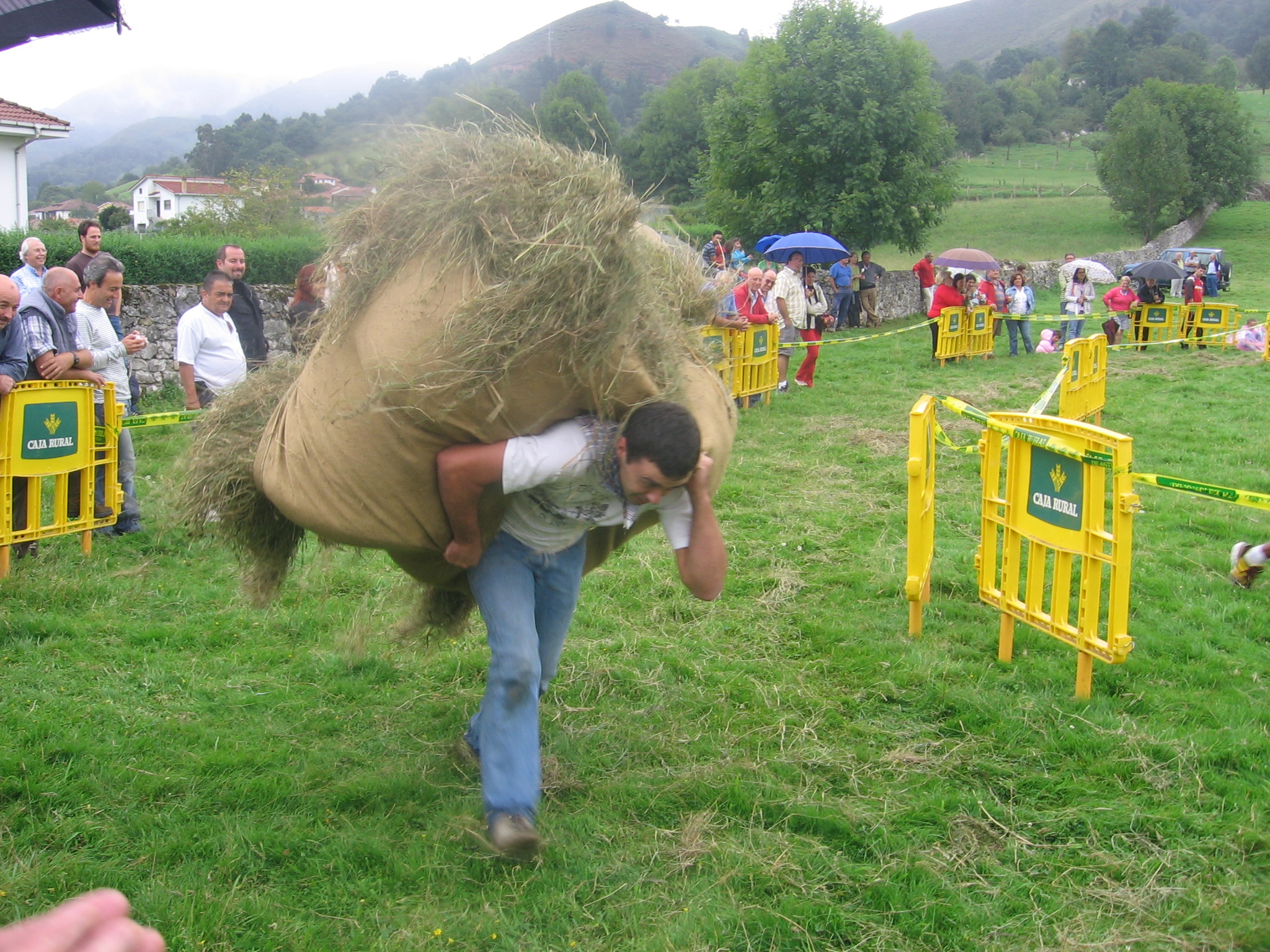 Carrying a bale of hay (before it rains)