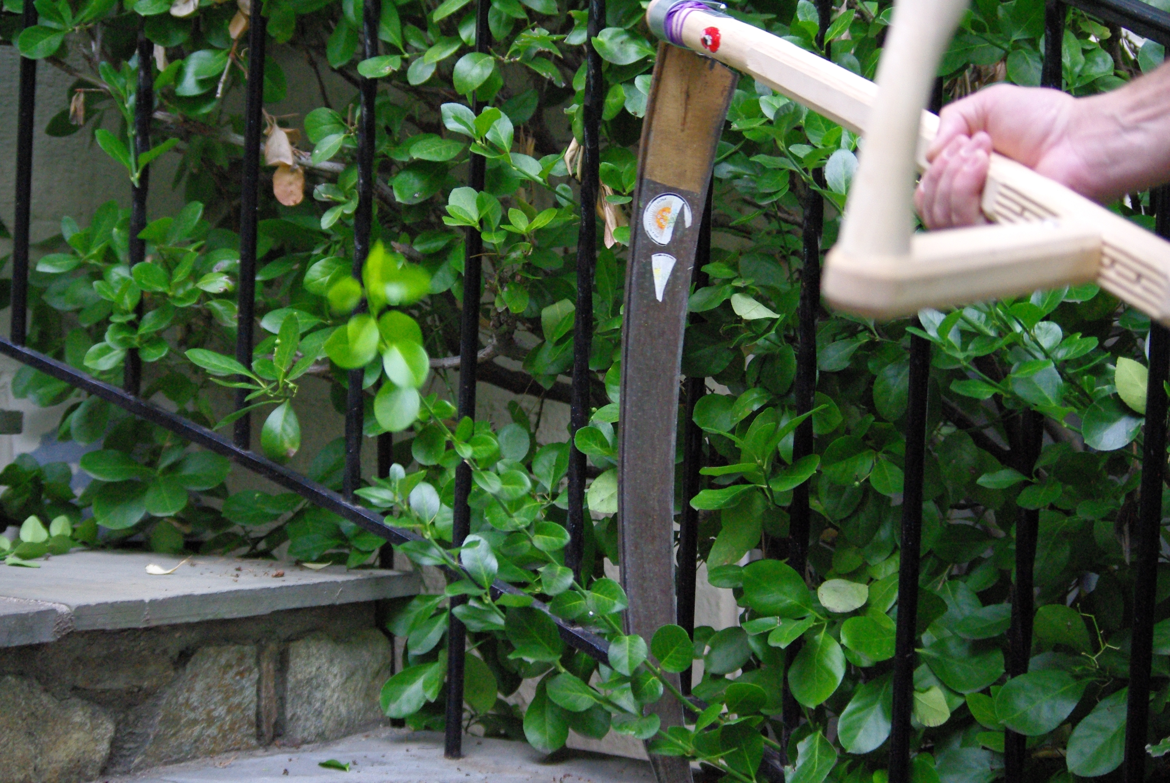 When talking about movies, we have all heard the expression “suspension of reality” and, quite frankly, that is often true. Scything in the city has a little bit of that too. Since scything is unusual activity off the farm, most people just will not make the connection. Others will not see the need or think that there are easier and more modern methods of taking care of the lawn or grass. More than one passerby will make a funny expression, thinking that you are going backwards or are nuts. Probably you will get a warning from the police if they see you waving a large blade around, even if your intentions are the most natural and healthy.