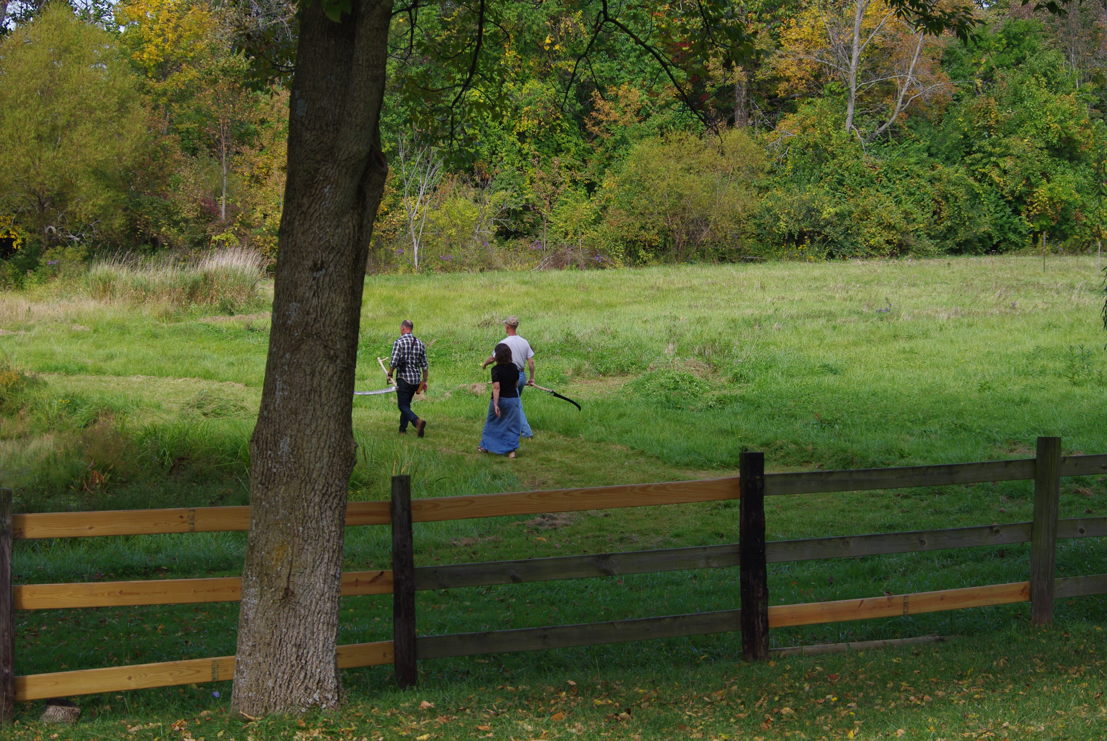 The area to be mowed with a scythe needs to be as clean as possible and, contrary to what I explained in previous posts—unfortunate encounters as you mow part one and two—in those situations, we do not have control of the obstacles that we find hidden. However this situation can be controlled just by raking well all the cut grass, and we will see the benefits next time we will mow.