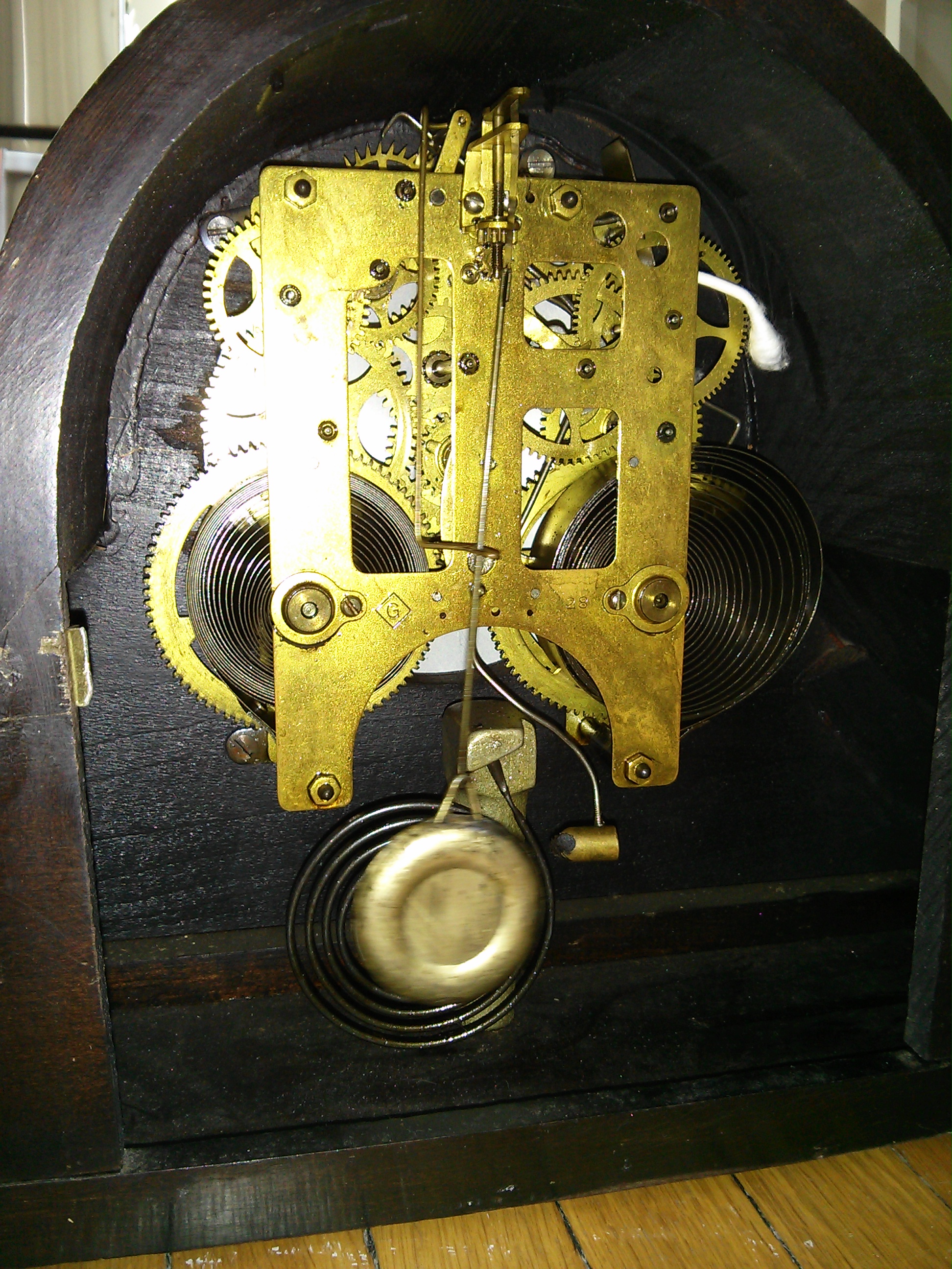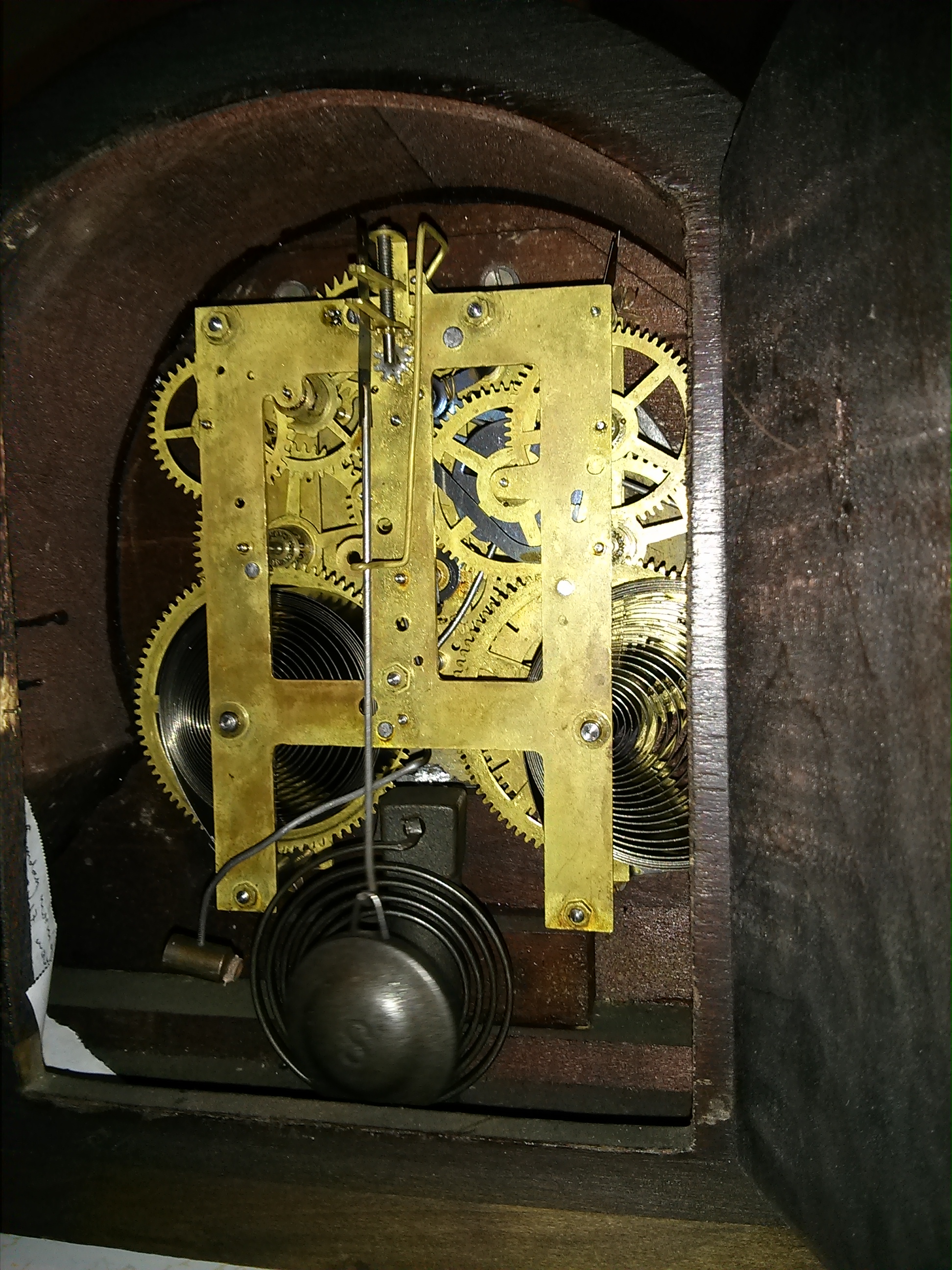 This Sessions mantle clock was my first one. It was filthy inside and outside, and I observed that the movement—except for the missing pendulum—was complete. There was no sign of a big problem. So I got a pendulum. It ran for a few minutes and stopped. But all it needed was a small adjustment, and a lot of patience, Finally it is running with the precision expected from a clock.