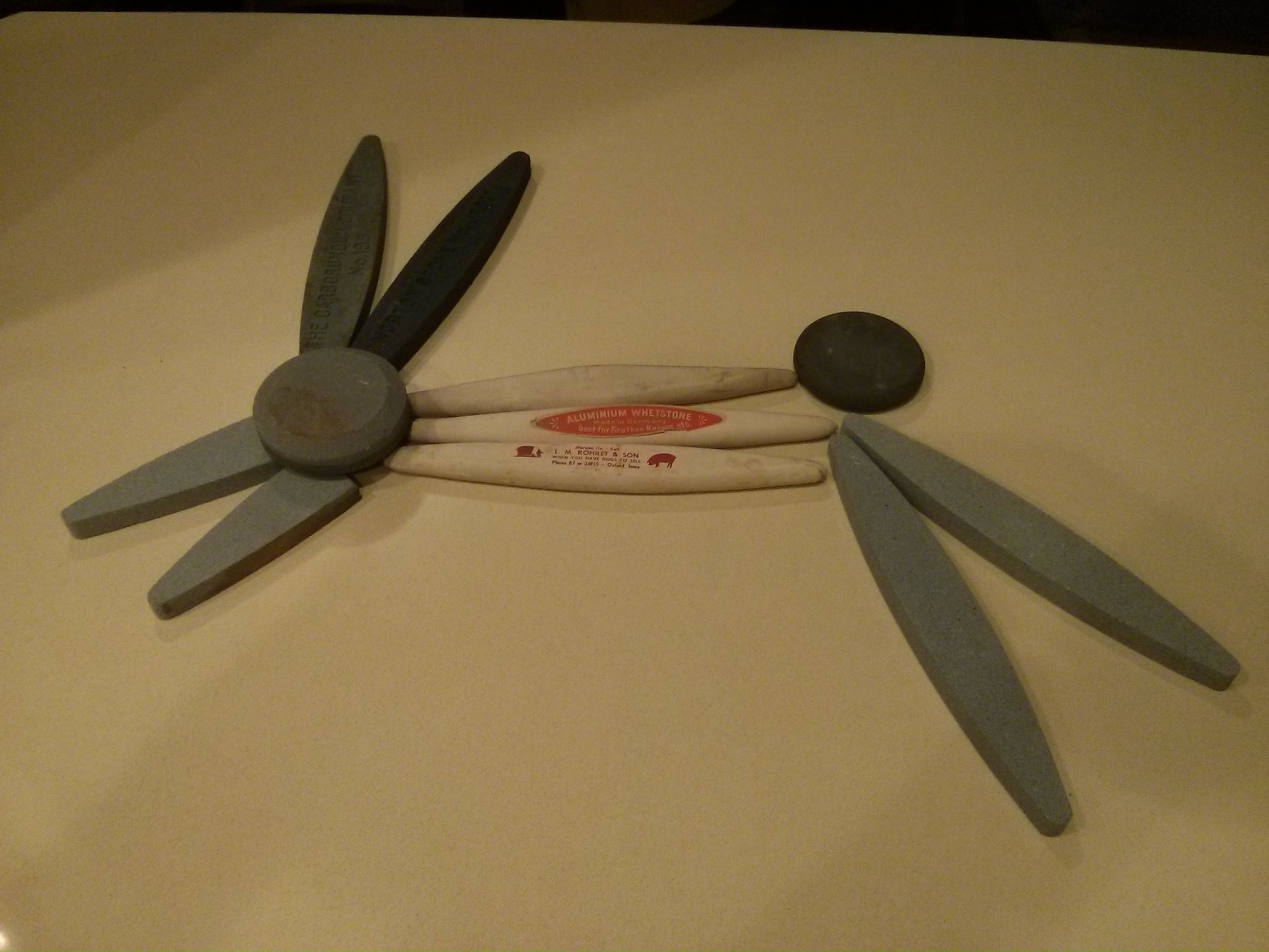 The coarse ones are rough, their composition is based on larger particles that will eat the bevel of the scythe blade more quickly, and, as a result, we will have to peen the blade more frequently since the previously peened bevel will be worn away sooner. These stones also will wear out fast, especially on those areas of initial contact with the blade. While the stone is pulling an edge from the blade, the blade also does its own damage to the stone—wearing the large particles away, despite their hardness.